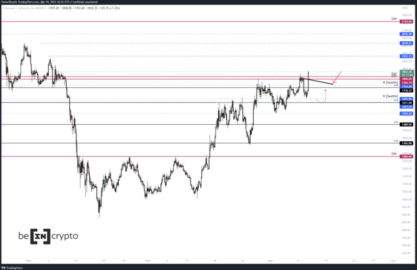 BeInCrypto Türkiye analisti Yağmur Bayoğlu, enflasyon verileri gelmeden önce Ethereum fiyatının 1.800 dolara yakın bölgede trend oluşturduğunu bildirmişti. ABD temmuz ayı enflasyon oranın %8,5 olarak açıklanmasının ardından Bayoğlu’nun işaret ettiği kırılımın gerçekleştiği görüldü.