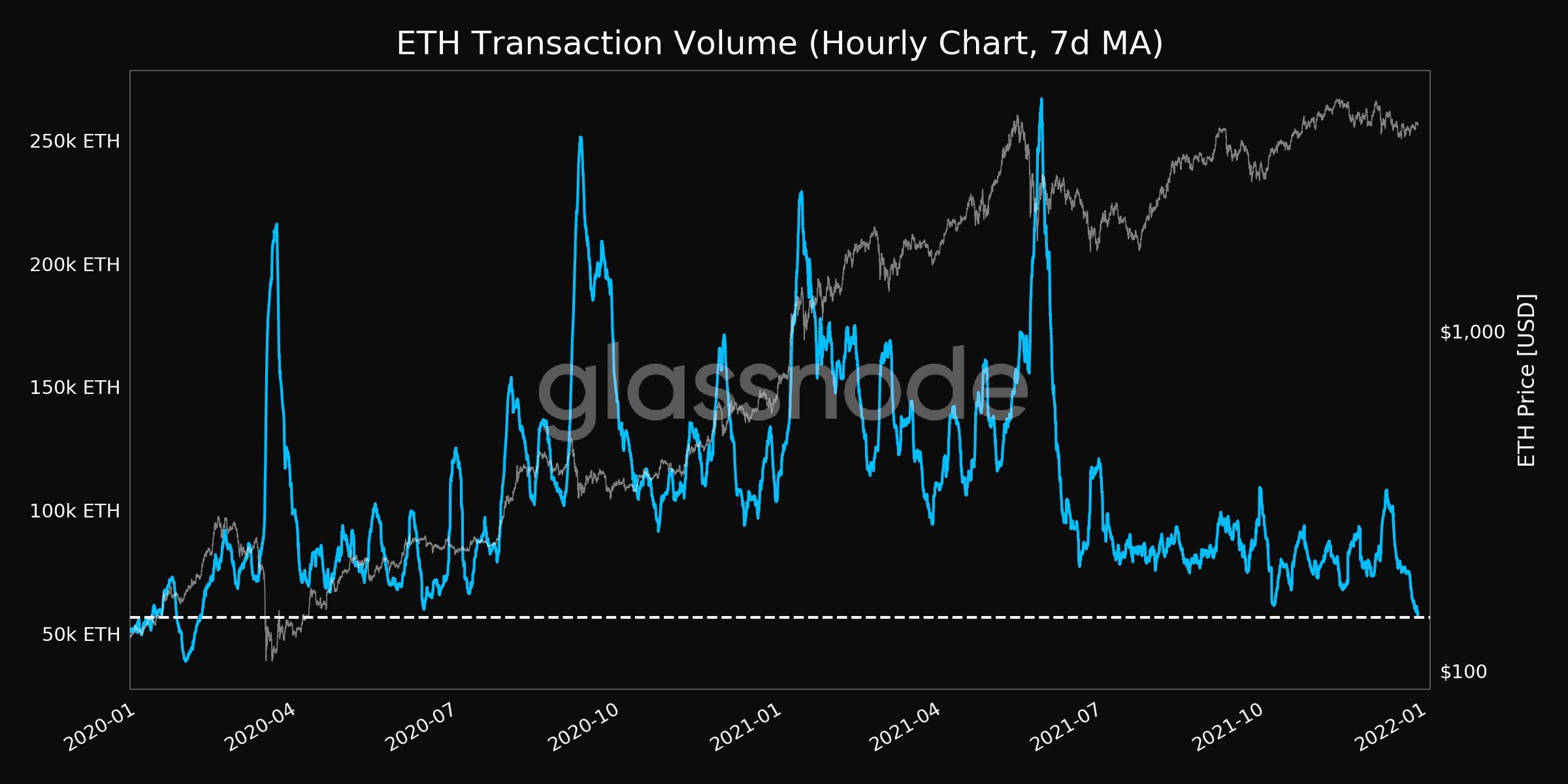 Bu sebepten dolayı ETH için alım ve satım minimum düzeydedir. Sonuç olarak ETH’de 7 günlük ortalama işlem hacmi 22 ayın en düşük seviyesine indi.”
