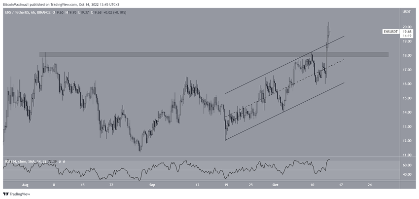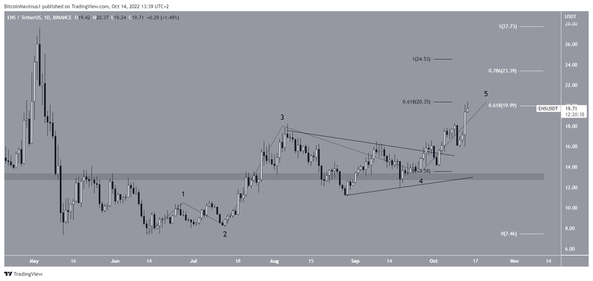 Ethereum Name Service (ENS), 20 dolarda yer alan önemli Fib direncine ulaştı. Eğer bu bölgeyi geçebilirse, bir sonraki direnç 24 dolarda yer alıyor.