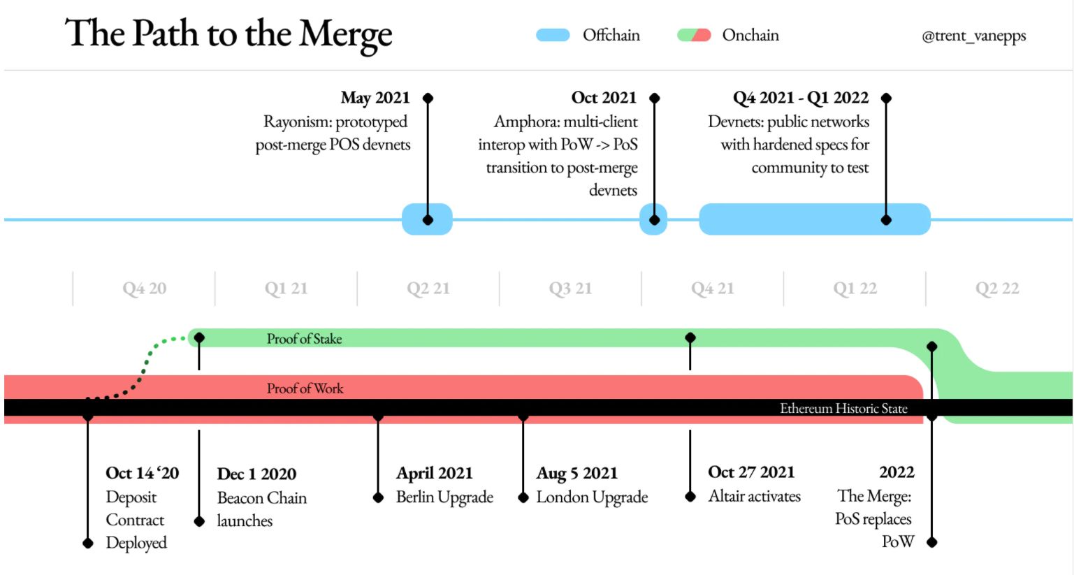 SponsoredThe Merge ile birlikte, Ethereum ağının POS mekanizmasına döneceği ve enerji tüketiminin de %99 azalacağı öngörülüyor. Bu durum işlem ücretlerinin düşmesini de beraberinde getirecek. 2.0 güncellemesinin en önemli ayaklarından biri kabul edilen The Merge için de geri sayım başlamış durumda. ETH2 geliştiricileri, kullanıcılara test için yardımcı olmaları yönünde duyurular yapmaya başladı.