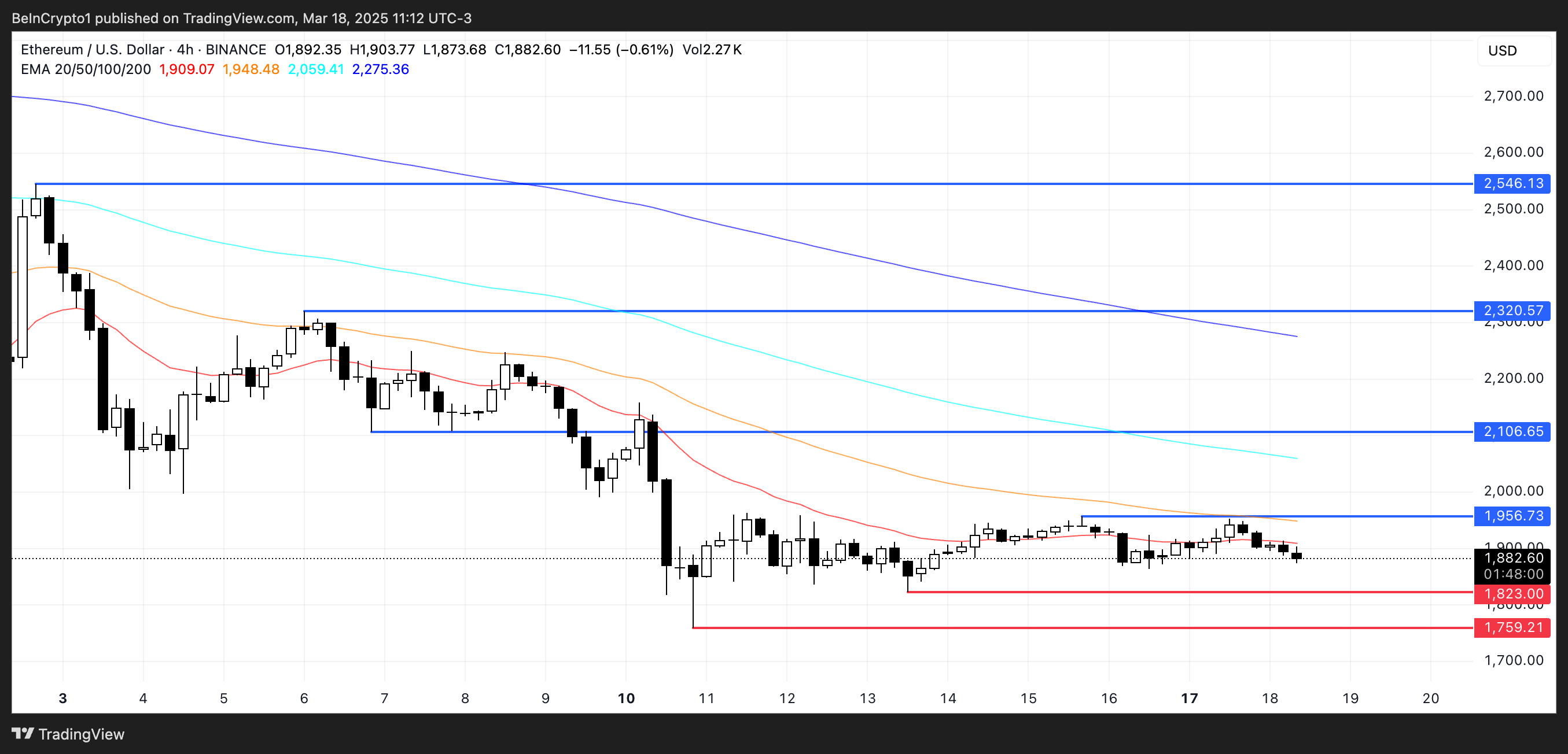 Mevcut destek 1.823 Dolar seviyesinde ve bu seviye test edilip kırılırsa, Ethereum 1.759 Dolar’a doğru daha da düşebilir ve bazı uzmanlar geleceğini savunsa da Ekim 2023’ten bu yana ilk kez 1.700 Dolar’ın altına inebilir.