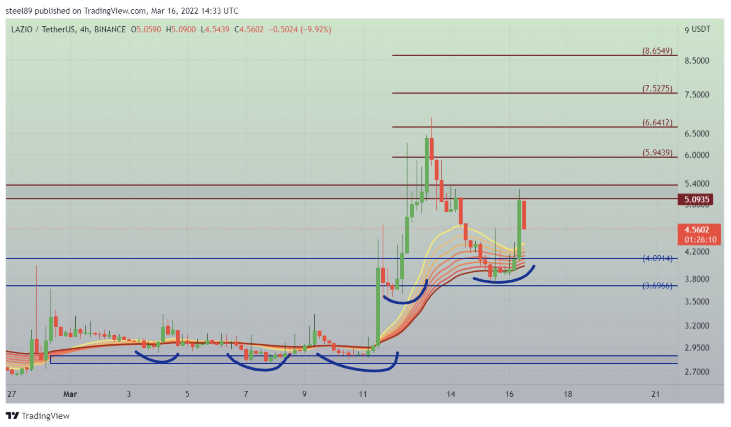 Piyasa verileri LAZIO’nun şu anda 4,67 dolardan işlem gördüğü gösteriyor. Analist atscrypto S.S Lazio Fan Token için yükseliş ihtimalinin hala geçerli olduğunu bildiriyor. Deneyimli analist, yükselişin sürmesi için LAZIO’nun 4 dolar seviyesini koruması gerektiğini ifade ediyor: