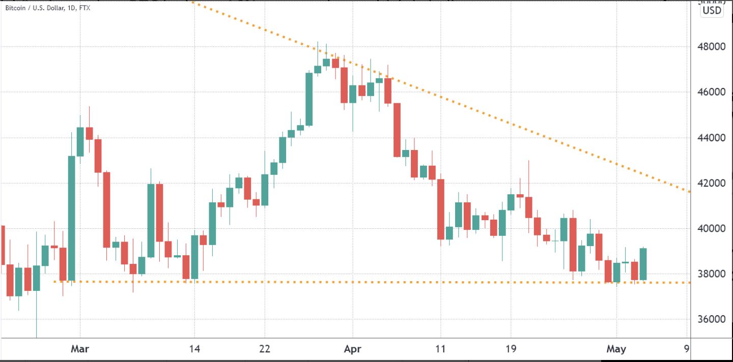 “Bitcoin (BTC) fiyatı son iki aydır düşen bir kama modeli içerisinde kaldı. Bu süre zarfında 37.600 dolarlık desteği birden çok durumda test etti. Bitcoin’in mevcut fiyat hareketinin gerçek itici gücü, yatırımcıların kötüleşen makroekonomik koşullarla ilgili endişelerinden kaynaklanıyor.”