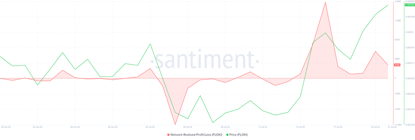 Floki’nin fiyatı, yatırımcılar arasında artan güven eksikliğinin yükünü taşıyabilir. Ağ, gerçekleşen kârlarda bir artış yaşıyor ve bu da FLOKI sahiplerinin varlıklarını sattığını gösteriyor. Bu eğilim, birçok yatırımcının kazanç elde etmek için mevcut fiyat seviyelerinden yararlandığını gösteriyor.