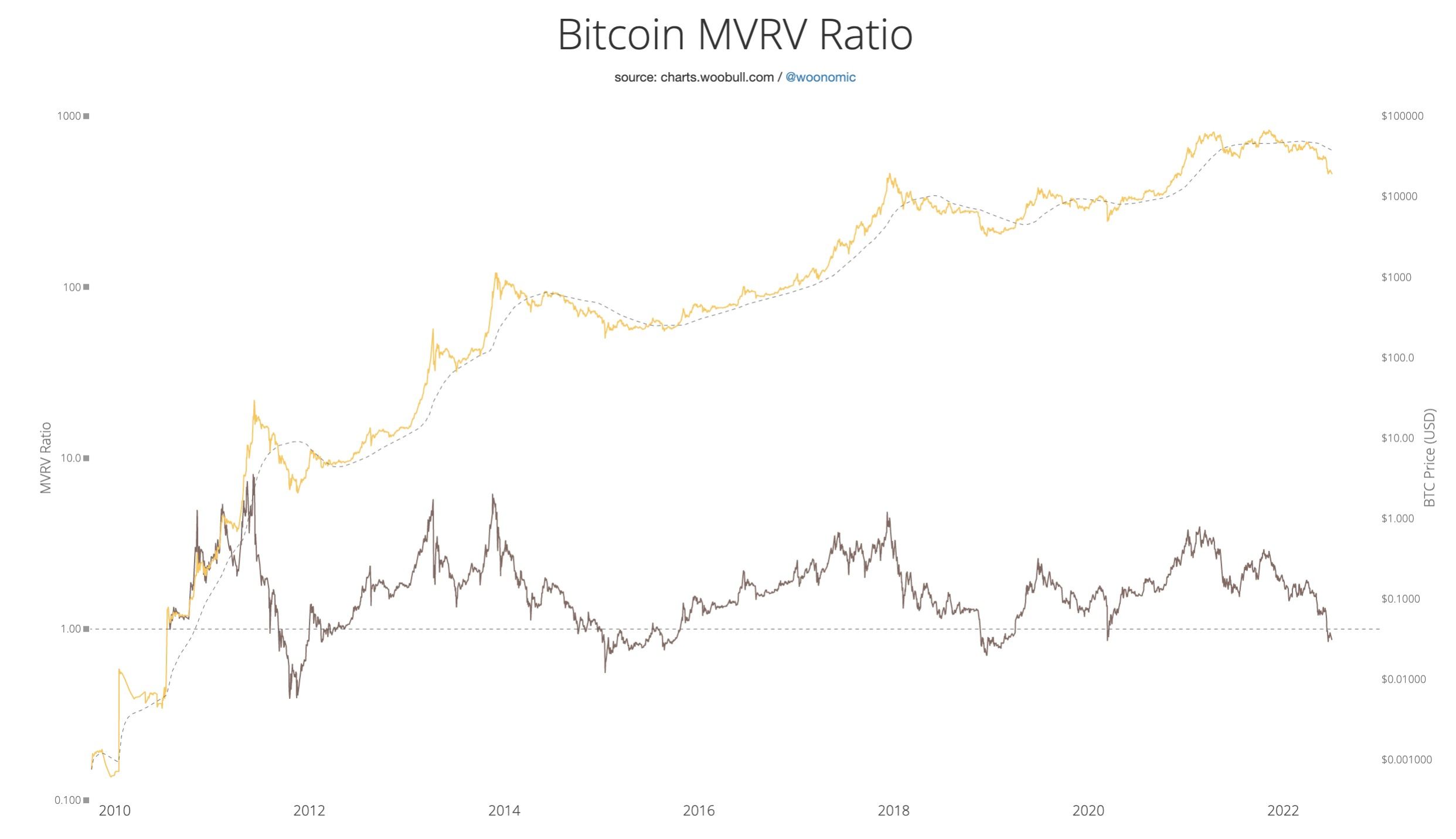 MVRV grafikleri paylaşan Woobull platformuna göre BTC fiyatı 10 Haziran tarihinden bu yana MVRV ortalamasının altında hareket ediyor.