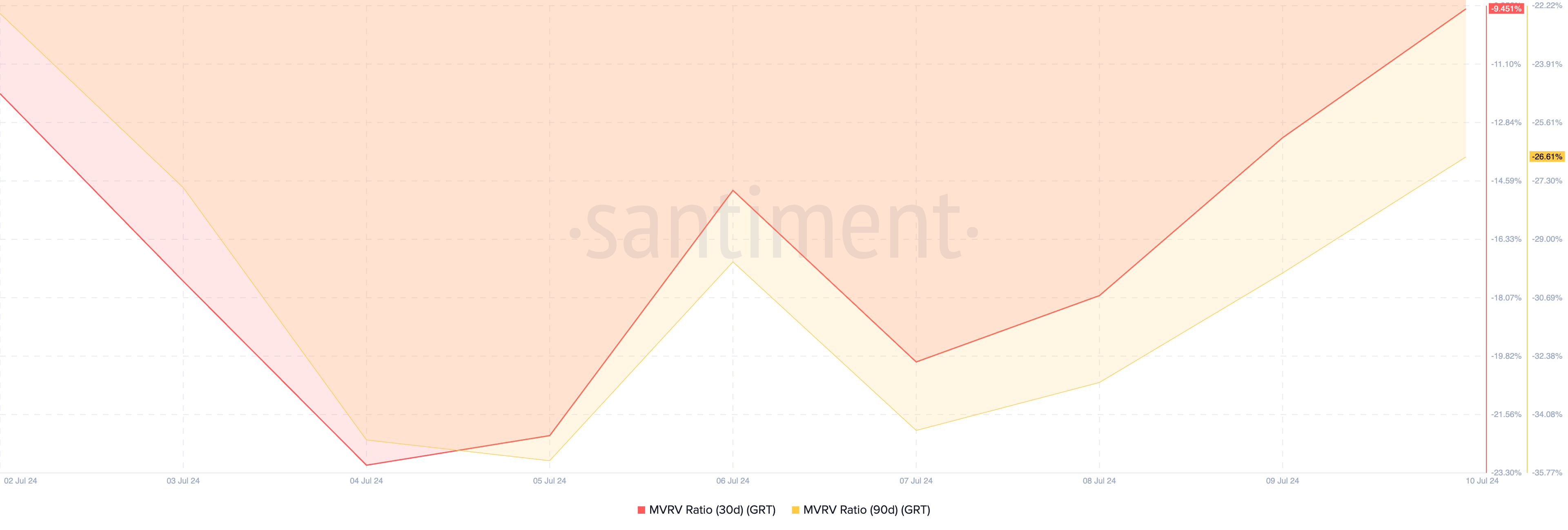 Piyasa değerinin gerçekleşen değere (MVRV) oranından elde edilen okumalara dayanarak, GRT mevcut fiyatından düşük değerlenmiştir.