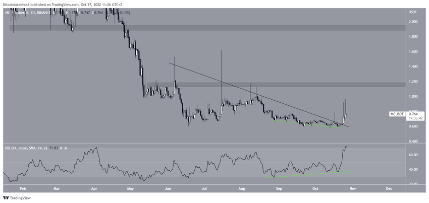 Chiliz (CHZ), Filecoin (FIL) ve Merit Circle (MC) de alçalan direnç çizgilerini geçti ve düzeltmenin tamamlanmış olabileceğine dair işaretler gösteriyor.
