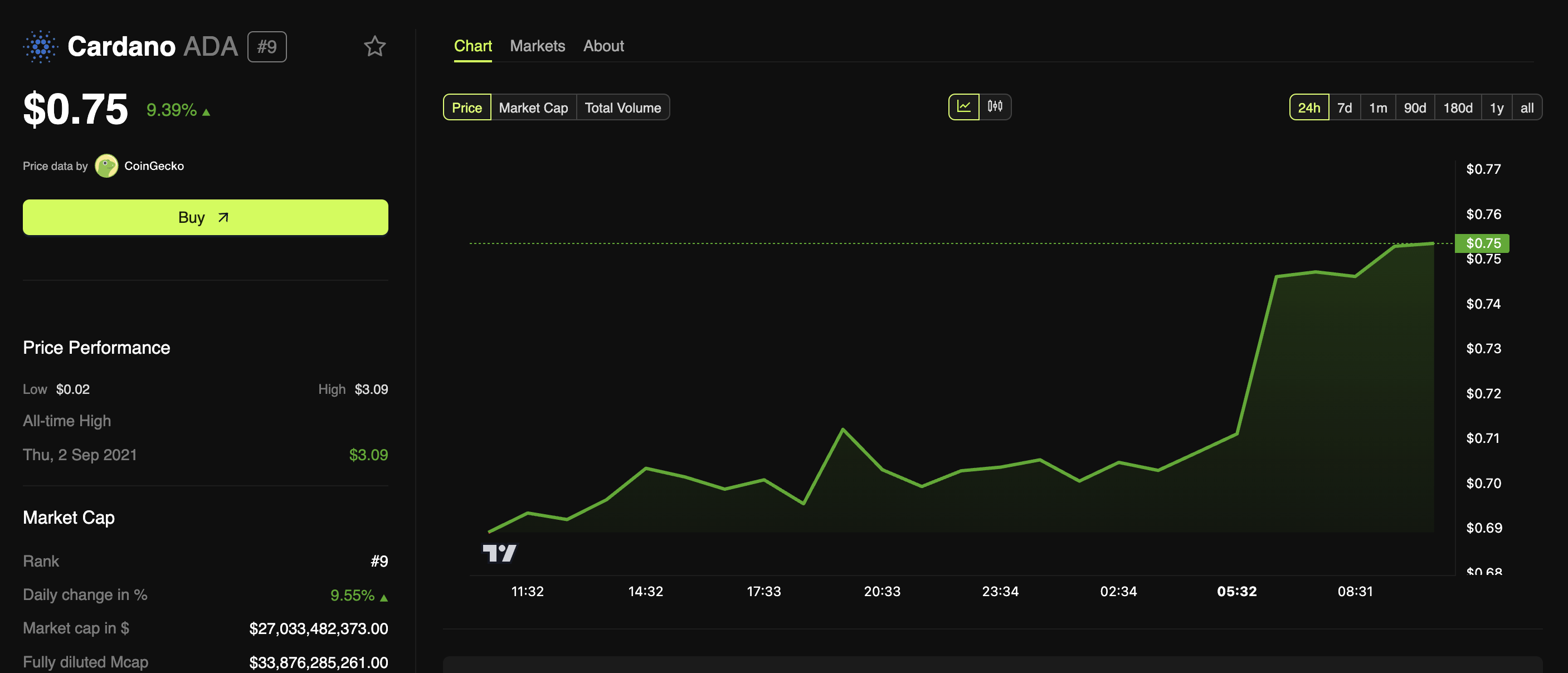 Özellikle, bu yükseliş bir kayıp döneminin ardından geldi. Geçen hafta %4,7 düşüş yaşadı. Ayrıca, geçen ay da altcoin için düşüş eğilimindeydi ve %26,3 geriledi. Yazı yazılırken, ADA 0,75 Dolar’dan işlem görüyordu.