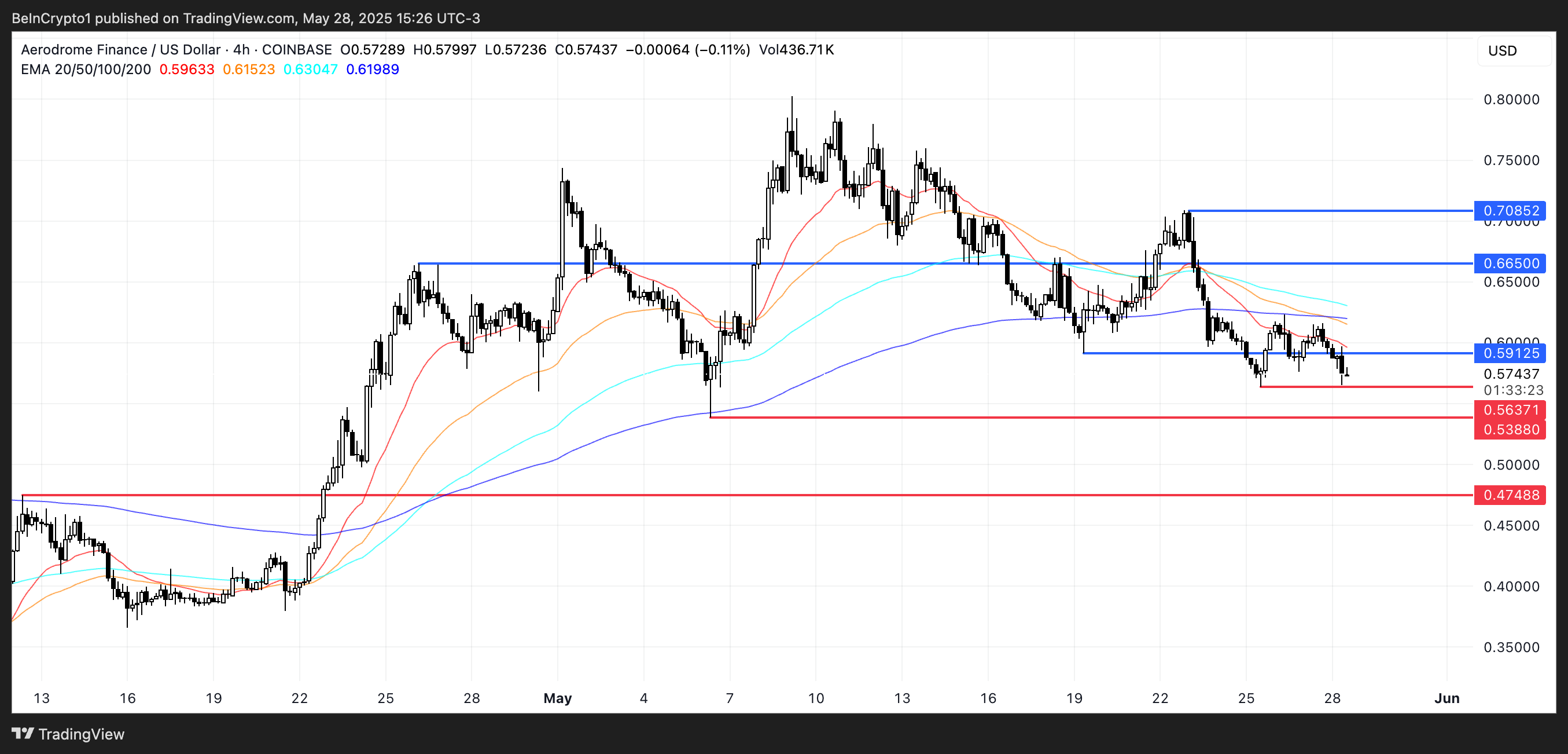 Eğer Base pazar payını artırmaya devam eder ve kullanıcı aktivitesi artarsa, AERO 0,591 Dolar direnç seviyesine doğru toparlanabilir.