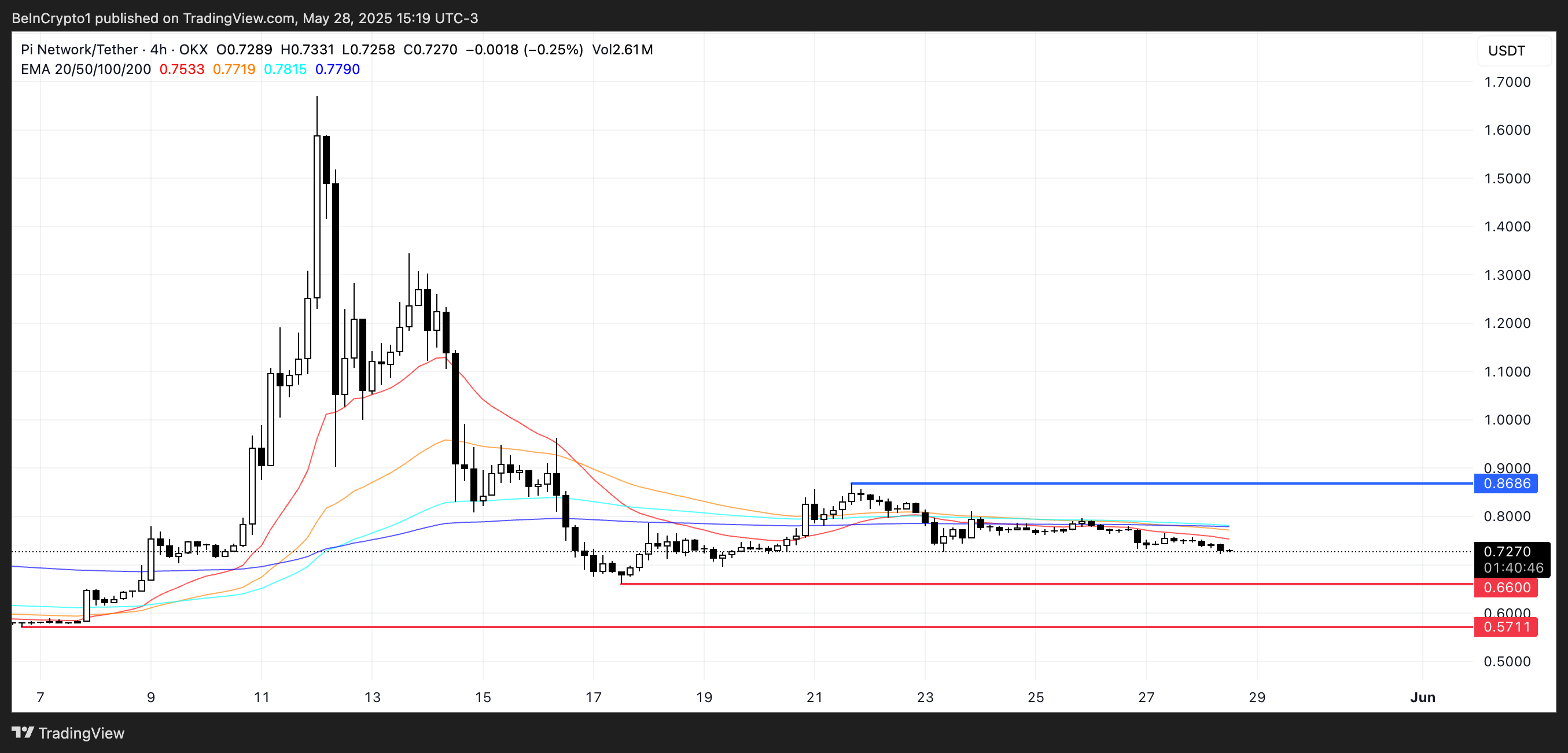 SponsoredDüzeltme devam ederse, PI 0,66 Dolar’daki önemli destek seviyesine doğru düşebilir. Düşüş momentumu artarsa 0,57 Dolar’a kadar gerileyebilir.