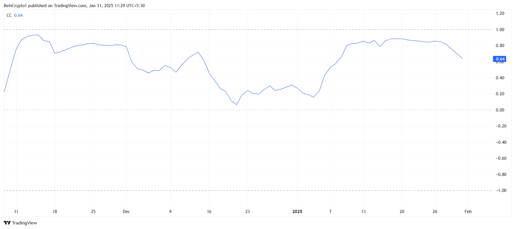 HBAR’ın Bitcoin ile olan korelasyonu son günlerde 0,64’e düştü ve iki varlık arasındaki bağlantının zayıfladığını gösteriyor. Bu korelasyondaki devam eden düşüş, HBAR için olumsuz olabilir çünkü Bitcoin şu anda 105.000 Dolar direncini aşma yolunda ilerliyor. HBAR, BTC’nin liderliğini takip edemezse, piyasa genelindeki kazançların gerisinde kalabilir.
