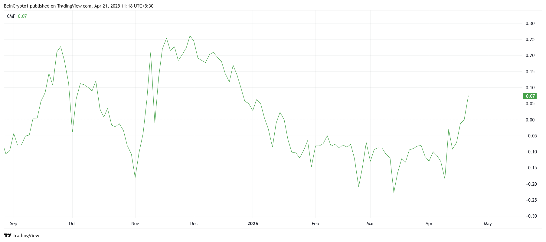 SponsoredYatırımcılar, fiyat artışları beklentisiyle daha düşük fiyat seviyelerinde token’a olan güvenlerini yeniden kazanmış görünüyor. CMF, 2025’in başından bu yana en yüksek seviyesinde ve bu olumlu hissiyatı daha da pekiştiriyor, altcoin’in geleceğinin iyileştiğini işaret ediyor.