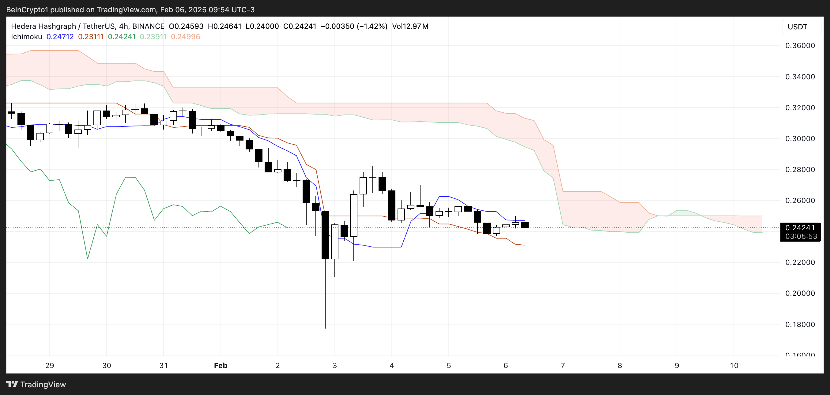 HBAR Ichimoku Cloud Ayı Formasyonu Gösteriyor