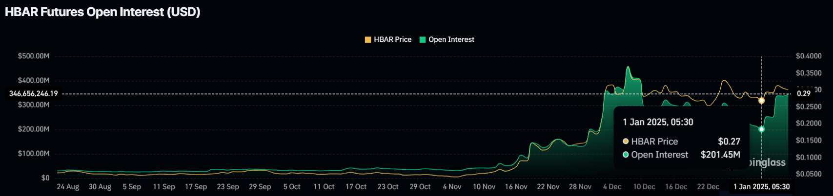 Ancak, yukarıda belirtilen piyasa ipuçları, bir çıkışın yakın olduğunu gösteriyor. Başarılı olursa, HBAR %0,39’a yükselebilir, 2024 zirvesine ulaşabilir ve muhtemelen %0,40’a ulaşabilir.