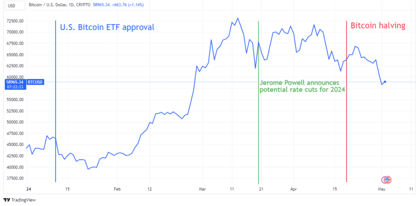 Pek çok trader, Hong Kong ETF’lerinin odak noktası olduğu bir dizi olay nedeniyle onay haberi üzerine Bitcoin fiyatının muazzam bir şekilde artacağına inanıyordu. Bu olaylar zinciri, ABD Merkez Bankası’nın faiz oranlarında duraklamaları ve olası indirimleri duyurmasıyla 2024’ün ilk çeyreğinde başladı.