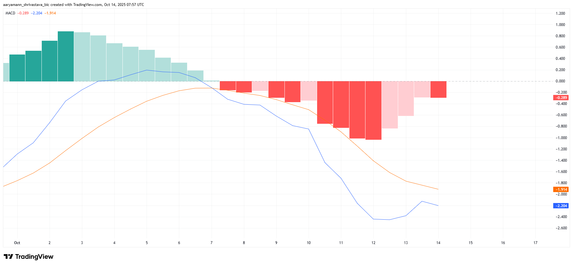 Makro düzeyde, Hareketli Ortalama Yakınsama Iraksama (MACD) göstergesi yakın zamanda yükseliş yönlü bir kesişim sinyali verdi. Ancak, satış momentumu arttıkça bu sinyal gerçekleşmedi ve gösterge daha da negatif bölgeye itildi.