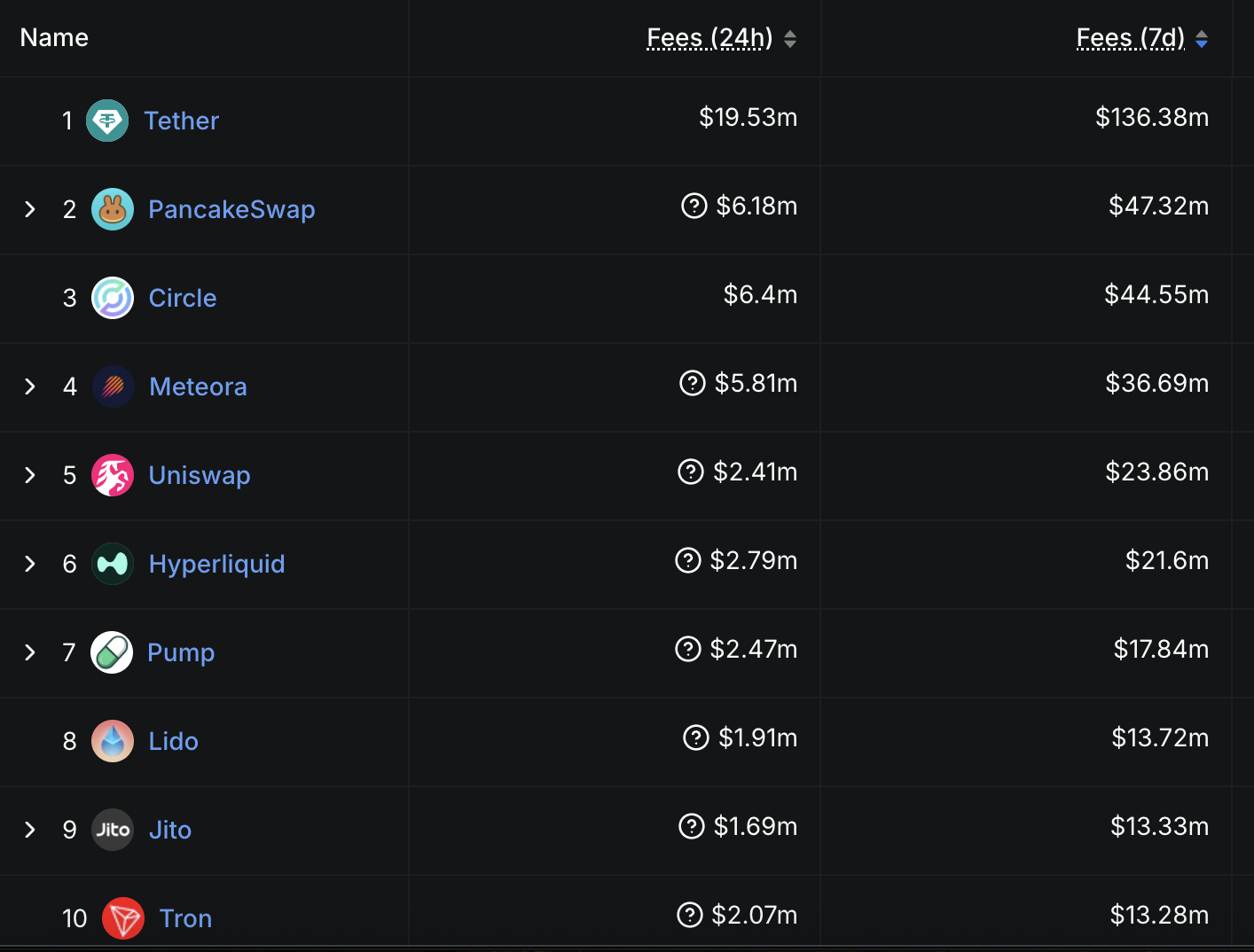 Spekülasyonun ötesinde, HYPE zincir üstü temellerde de üstün performans gösterdi. Son yedi günde, protokol 21,6 milyon Dolar ücret üreterek Pump, Lido, Jito ve Tron’un önünde tüm kripto para uygulamaları ve zincirler arasında altıncı sırada yer aldı.