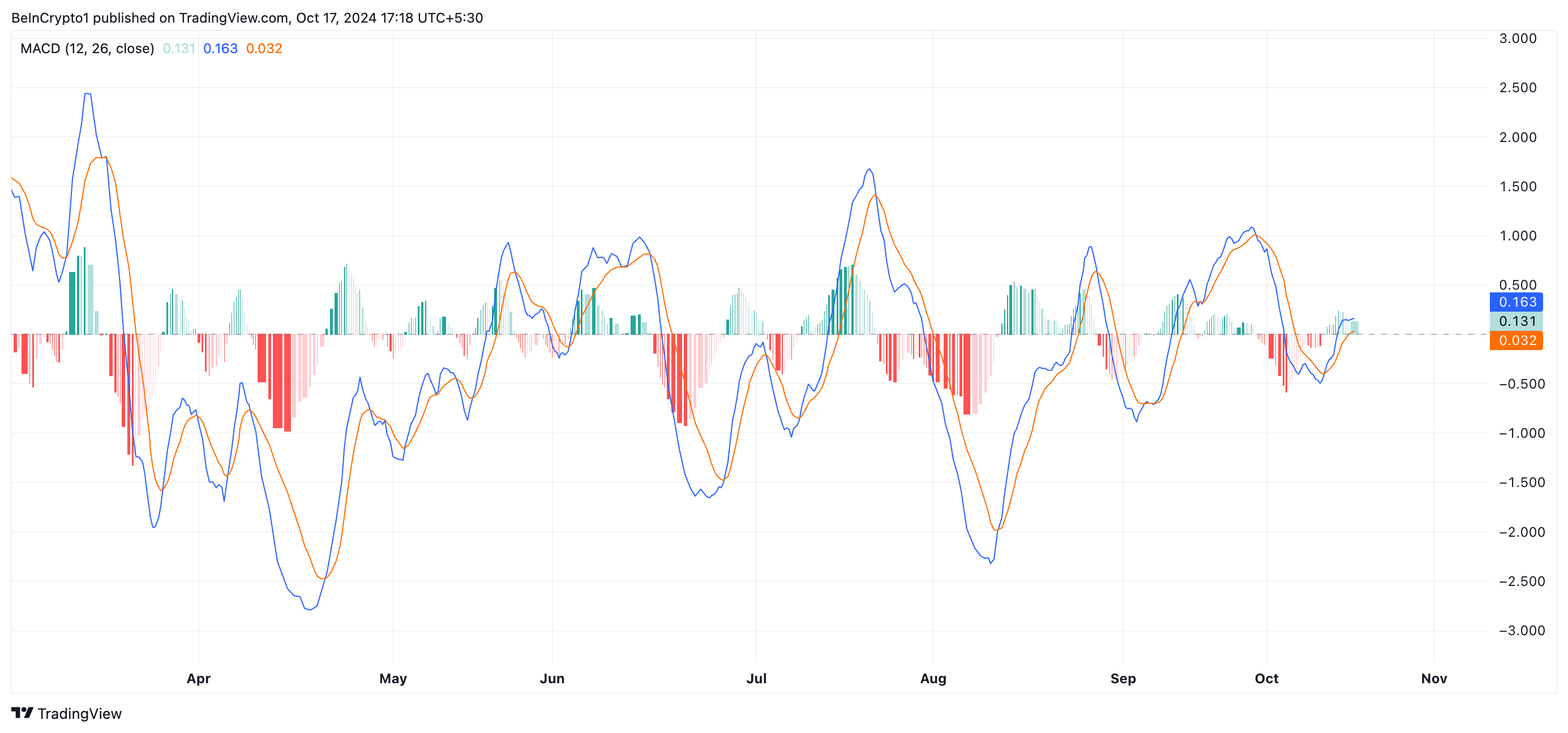 Bu yazının yazıldığı sırada, coin’in MACD çizgisi (mavi), hem sinyal çizgisinin (turuncu) hem de sıfır çizgisinin üzerinde konumlanmış durumda. MACD göstergesi, fiyat trendlerini ve ivmeyi izler ve potansiyel alım veya satım sinyallerini belirlemeye yardımcı olur.