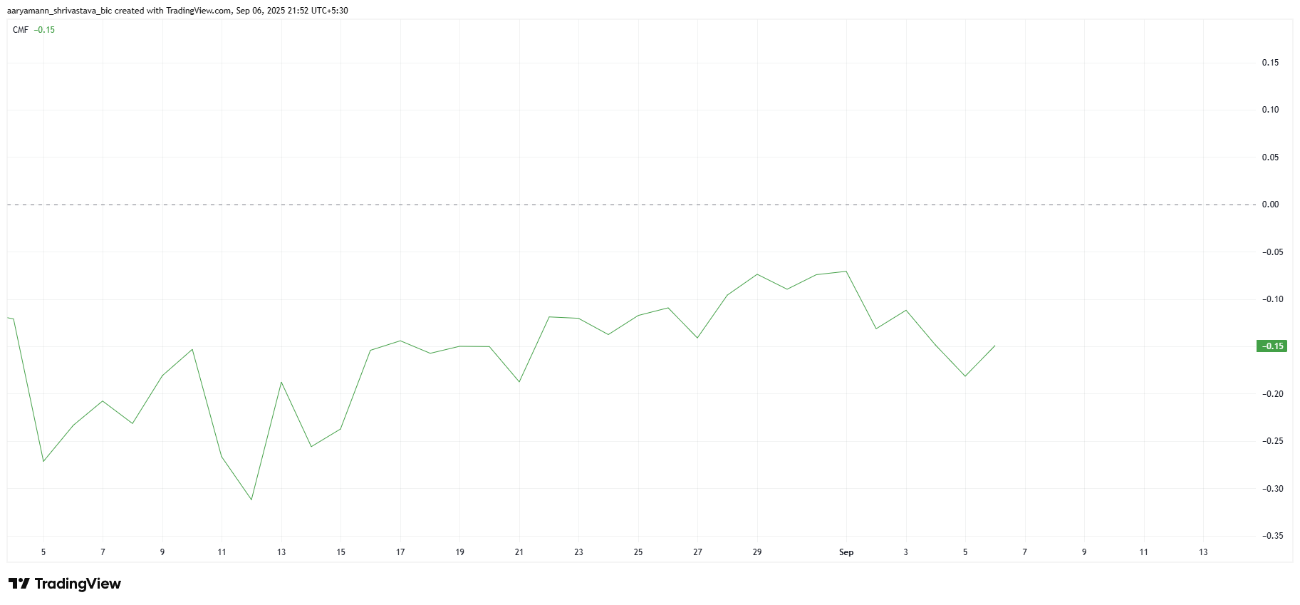 Son yükselişe rağmen, Chaikin Para Akışı (CMF) göstergesi altında yatan zayıflığı işaret ediyor. Şu anda sıfır çizgisinin altında negatif bölgede yer alıyor ve sınırlı yatırımcı katılımını ve zayıf girişleri vurguluyor.