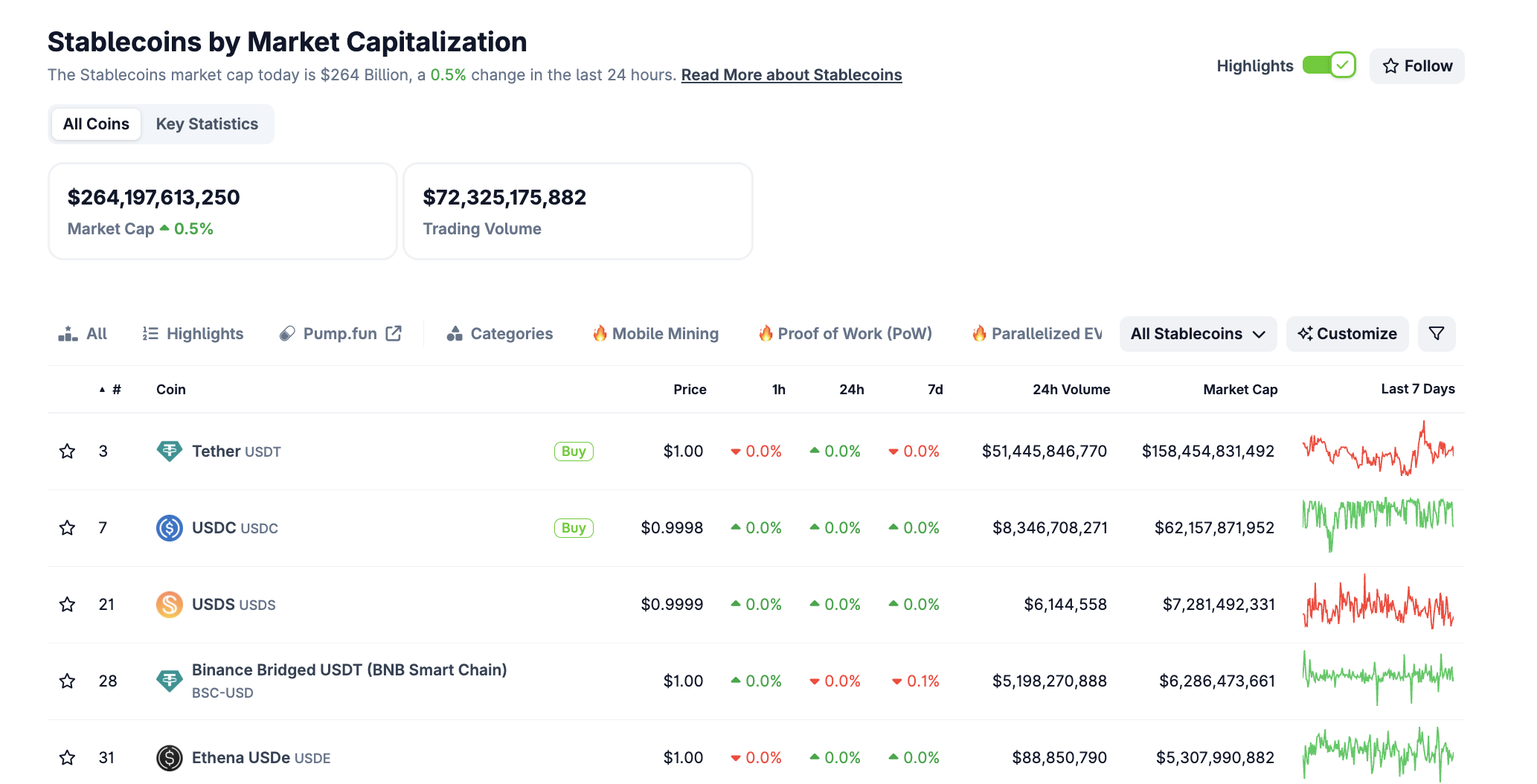 Bu farklılık, stablecoin’lerin potansiyeli hakkındaki farklı bakış açılarını yansıtıyor ve bu dijital varlık sınıfının geleneksel finansal sisteme entegre olma yeteneği hakkında sorular ortaya çıkarıyor. Yine de, stablecoin piyasası hala benzeri görülmemiş bir büyüme yaşıyor ve piyasa değeri 264 milyar Dolar’ı aşıyor.