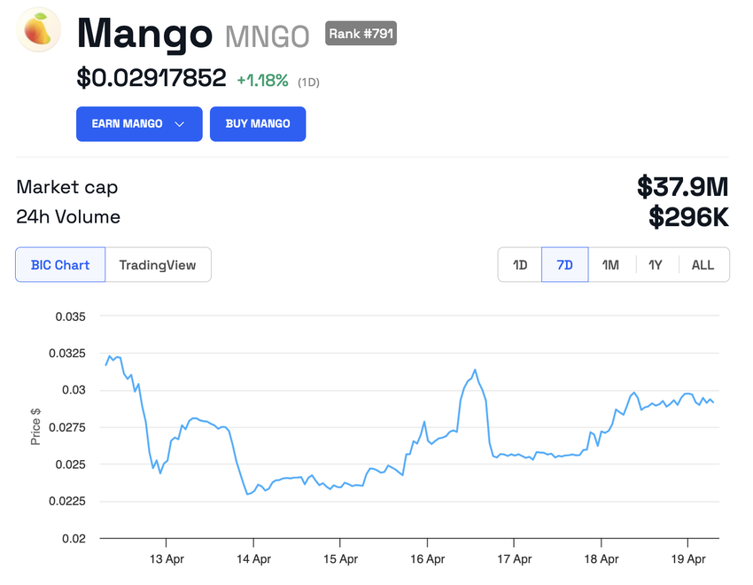 Solana’da merkezi olmayan bir borsa (DEX) olan Mango Markets, Merkezi Olmayan Otonom Organizasyon (DAO) temelinde yönetişimini sürdürmektedir. Kendi yerel token’ı olan MNGO’nun sahiplerinden oluşmaktadır. Bu, yatırımcıların kripto para birimleriyle işlem yapmak için borç vermelerine, borç almalarına, ticaret yapmalarına ve kaldıraç kullanmalarına olanak tanır.
