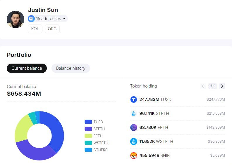 Zincir üstü izleme platformu Spot On Chain, Sun’ın iddiasını destekledi. Spot On Chain’in verileri, Sun’ın Şubat 2024’ten bu yana üç cüzdan aracılığıyla yaklaşık 1,15 milyar dolar değerinde 377.590 ETH biriktirdiğini gösterdi. Sun’ın cüzdan adresleri hala yaklaşık 3,55 milyon dolar değerinde 1.554 ETH’ye sahip. Ek olarak, önemli miktarda stETH, EETH ve wstETH’ye sahiptir.
