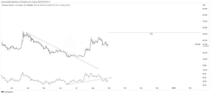 Ünlü kripto para trader’ı @javonnnm ETC grafiği paylaştı ve fiyatın 52 dolara ulaşmasının büyük bir olasılık olduğunu belirtti.