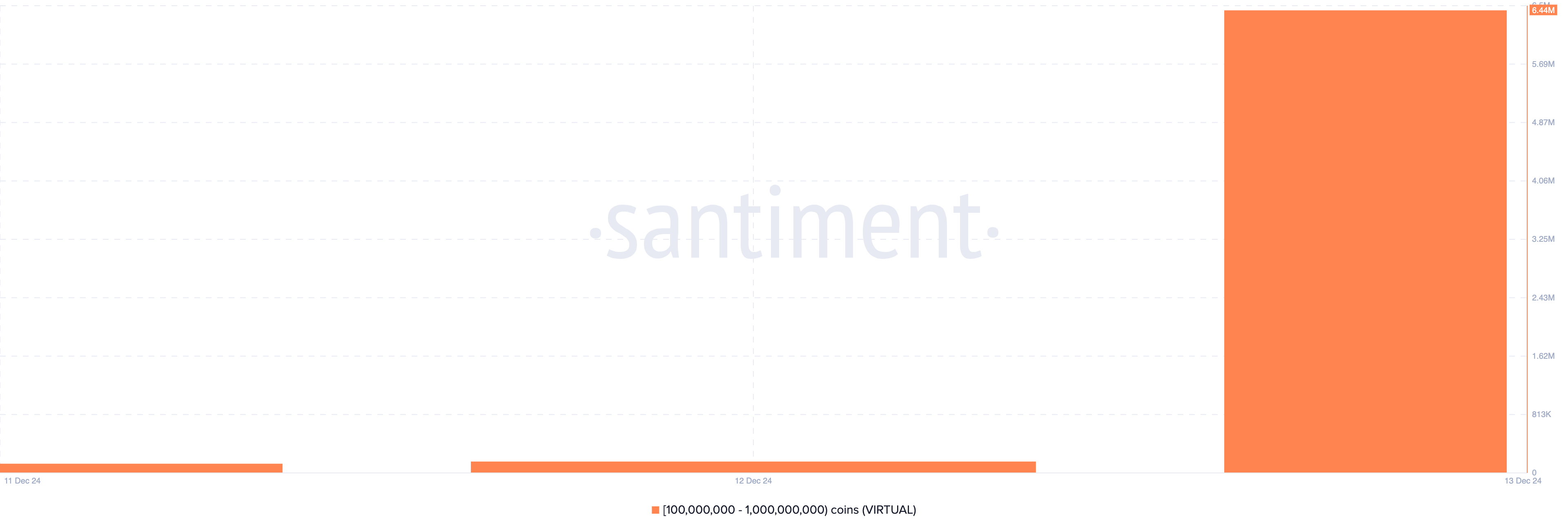 Santiment’e göre, 100 milyon ile 1 milyar VIRTUAL token tutan adresler altcoin’i yoğun bir şekilde biriktirdi. Örneğin, dün, 12 Aralık’ta, bu adreslerin elinde tuttuğu bakiye 145.000 token idi.