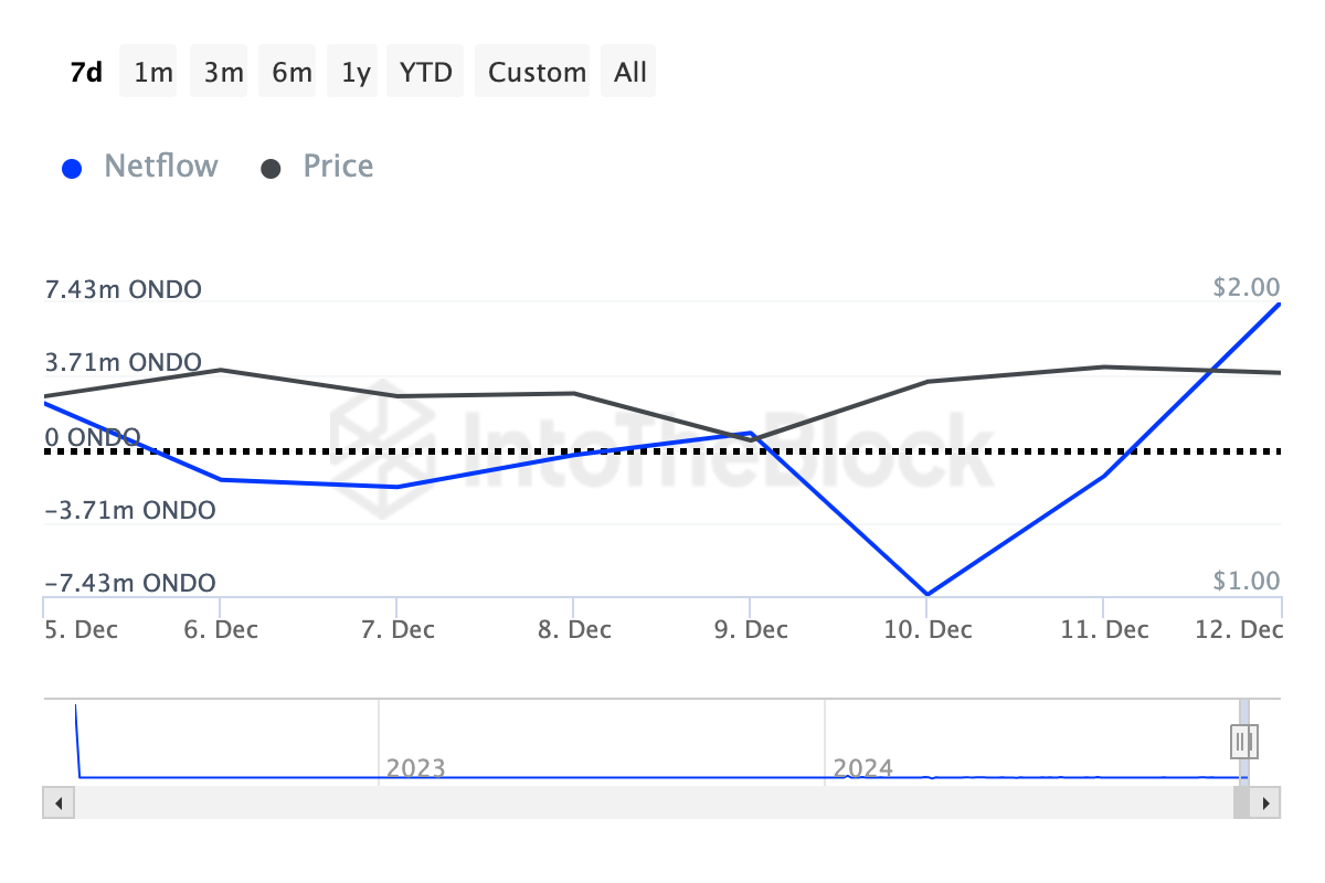 Bu alım baskısı sonucunda, ONDO’nun fiyatı bu hafta %17 arttı. Eğer kripto para balinaları altcoin’i almaya devam ederse, değeri 2 doların üzerine çıkabilir.