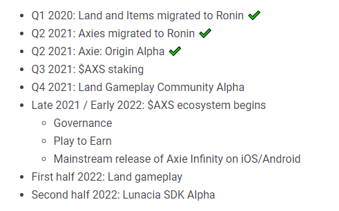 iOS / Android açısından en çok beklenen AXS coin stake edebilme ve Axie Infinity uygulamasının lansmanı olacaktır. Her ikisi de platforma daha fazla kullanıcı getirecek ve potansiyel olarak ERC-20 token’larının ve NFT’lerin fiyatını artıracaktır.