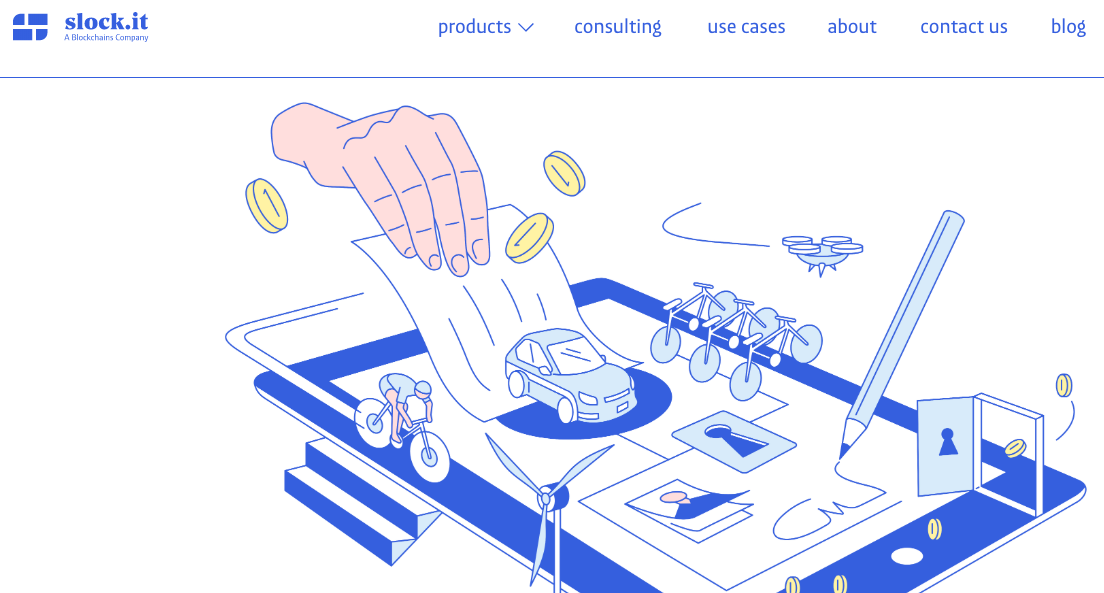 Slock.it, Nesnelerin İnternetini (Internet of Things) Blockchain teknolojisi ile bağlar. Akıllı kontratları evler gibi IoT cihazlarına yerleştirir ve herkesin bağlantılı mülkü satmasına, kiralamasına veya paylaşmasına olanak tanır. Slock.it’in sitesine göre, şu anda kontrol edilebilen 30.7 milyar IoT cihazı bulunmaktadır. Diğer kullanım durumlarına örnek olarak ise yenilenebilir enerji, e-şarj ve oylama sistemleri tedariği verilebilir.