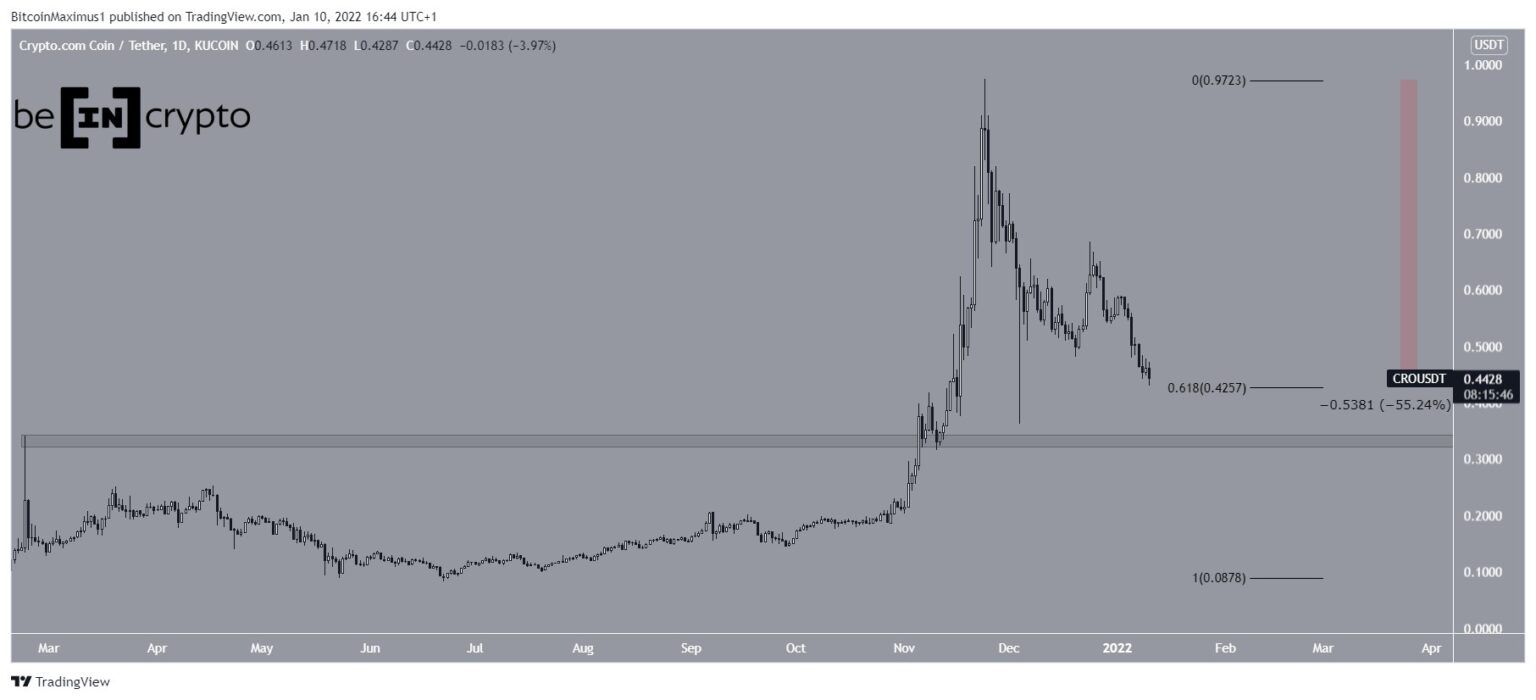 CRO’nun fiyatı 24 Kasım’da tüm zamanların en yüksek seviyesi yani ATH’si olan 0.97 dolara ulaştığından beri düşüşe geçmiştir. Şimdiye kadar %55 oranında düşüş yaşayan CRO şu anda 0.618 Fib geri çekilme destek seviyesinin hemen üzerinde 0.40 dolardan işlem görmektedir. Bu nedenle de mevcut seviyenin bir sıçrama başlatması oldukça mümkün gözükmektedir.