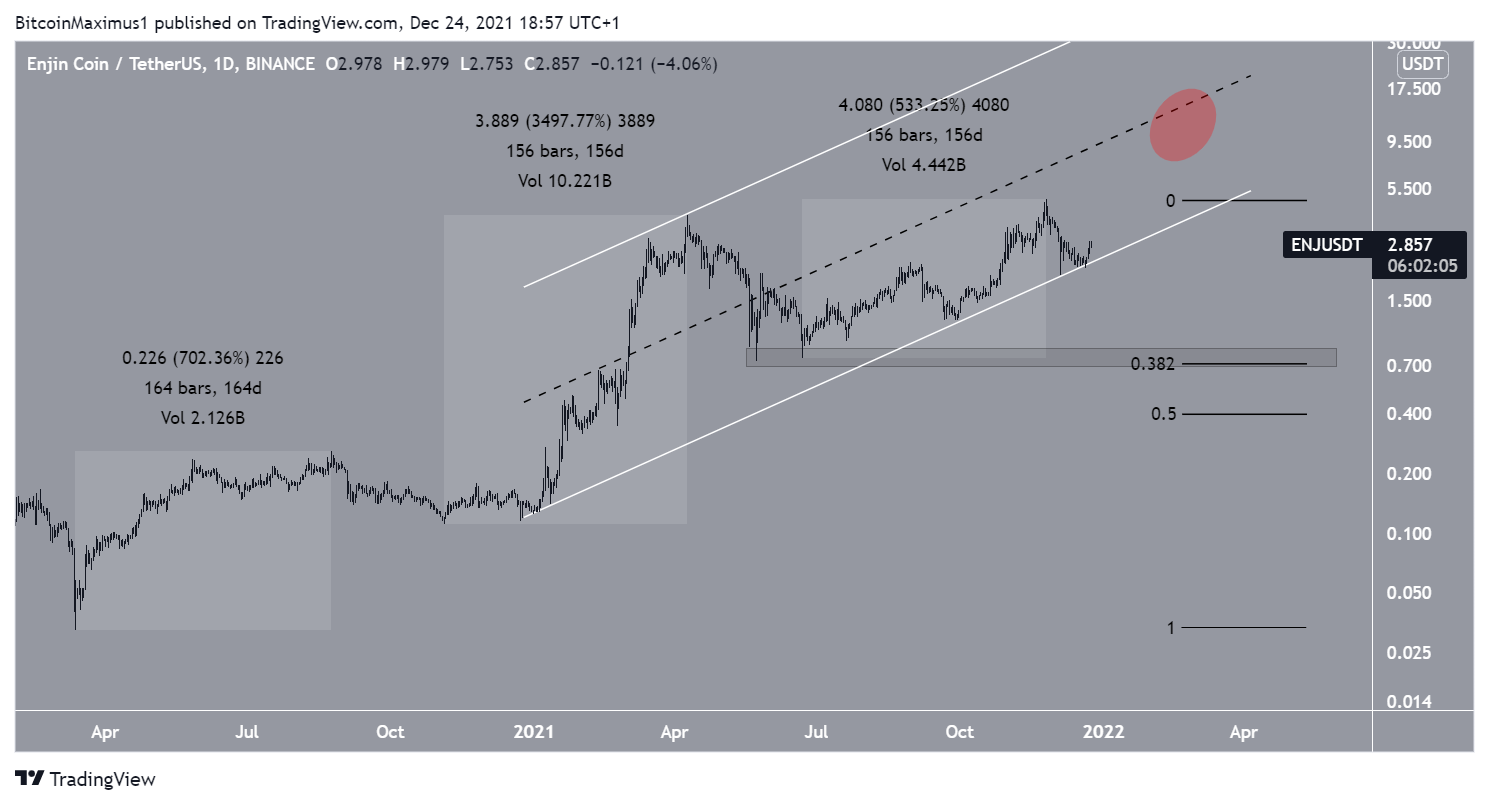 Enjin coin yorum konusuna girilmeden önce bu coin’in yukarı yönlü ilk hareketinin 2020 Nisan-Ağustos ayları arasında gerçekleştiğini belirtmek gerekir. Bu yükseliş hareketi toplamda 164 gün devam etmiş ve yaklaşık %700 büyüklüğünde olmuştur.