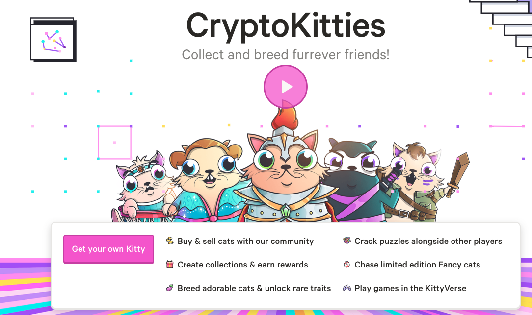 En önemlisi Axiom Zen tarafından yaratılan ve sanal kedileri yetiştirip toplayabileceğiniz bir oyunda bir gecede başarı sağlayan CryptoKitties’dir. CryptoKitties ERC 721 token standartlarından yararlanır. Böylece sanal kedileriniz tamamen eşsizdir. Yani bu kedilerin sahipleri varlıklarının kopyalanamayacağından ya da alınamayacağından emin olurlar. Cryptokitties moda olduğundan beri, platformlarını ERC 721 token standartlarına dayanarak inşa eden çok sayıda oyun ve aplikasyon yaratılmıştır.