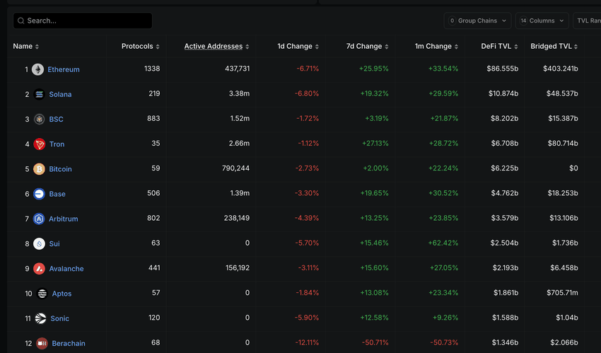 Solana (850K DAU) ve Sui (350K DAU) gibi yüksek hızlı zincirler, düşük ücretler ve neredeyse anında kesinlik sunarak geliştiricileri ve kullanıcıları çekmeye devam ediyor. Karşılaştırıldığında, Ethereum L1, daha yüksek gecikme ve maliyetle ~400K DAU görüyor.