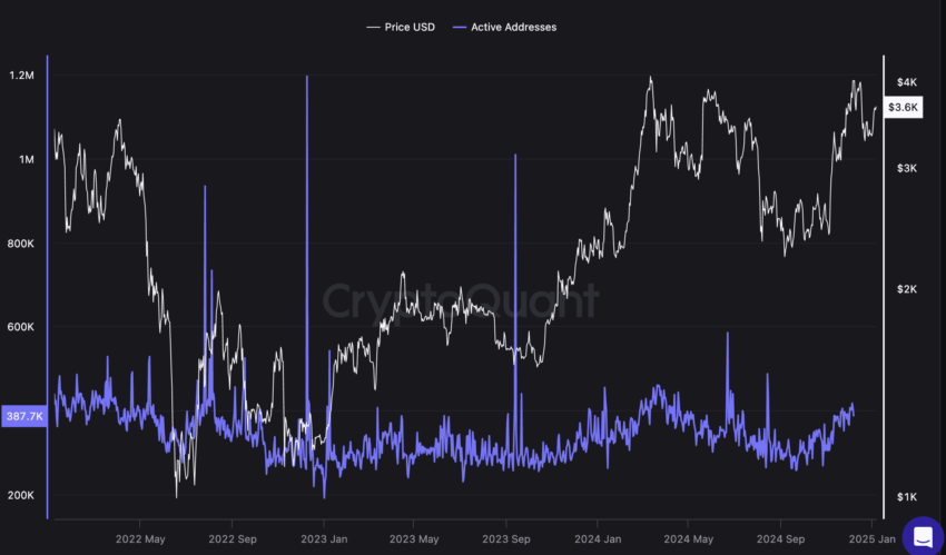 Bakılması gereken bir diğer önemli metrik de aktif adres sayısıdır. Sabit aktif adres sayısına rağmen fiyatların 2025’te nasıl zirve yaptığına dikkat edin. Bu zirveler, aktif adres numarasındaki ara sıra meydana gelen dalgalanmalara bağlanabilir. Görüntü Ocak 2025’e ait olsa da, Mart 2025 itibarıyla etkin adres sayısı değişmedi ve sürekli olarak benimsendiğini gösteriyor.