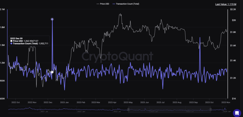 Bu segmenti başlatmak için hızlı bir ölçüm, işlem sayısı olacaktır. Özellikle, işlem sayısı 2022’nin sonlarına doğru arttı ve ardından bir aydan kısa bir sürede mucizevi bir fiyat artışı geldi. Ekim 2024’te de benzer bir şey olmaya başladı ve ardından fiyatlar yükseldi.
