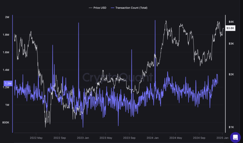 2025’in başları itibariyle, fiyatlar 2023’ten bu yana neredeyse iki katına çıkmış olsa da işlem sayısı sabittir. Evet, işlem sayısı Mart 2025’te biraz düştü, ancak seviyeler henüz endişe verici değil.