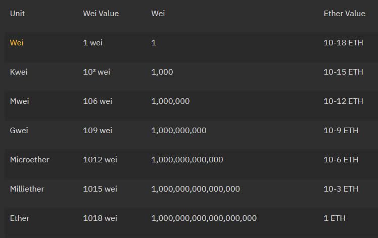 Ether’in daha küçük ölçüleri vardır. En küçükleri 10^18 ETH olan Wei’dir. Ölçülerin tam listesine ise buradan ulaşabilirsiniz.