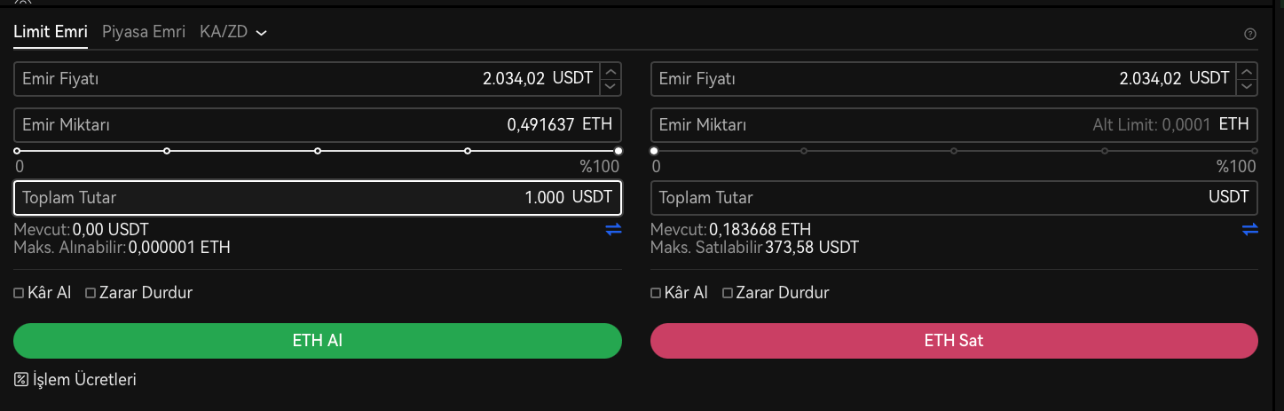 5. Piyasa veya limit emri vererek alım işleminizi tamamlayın.