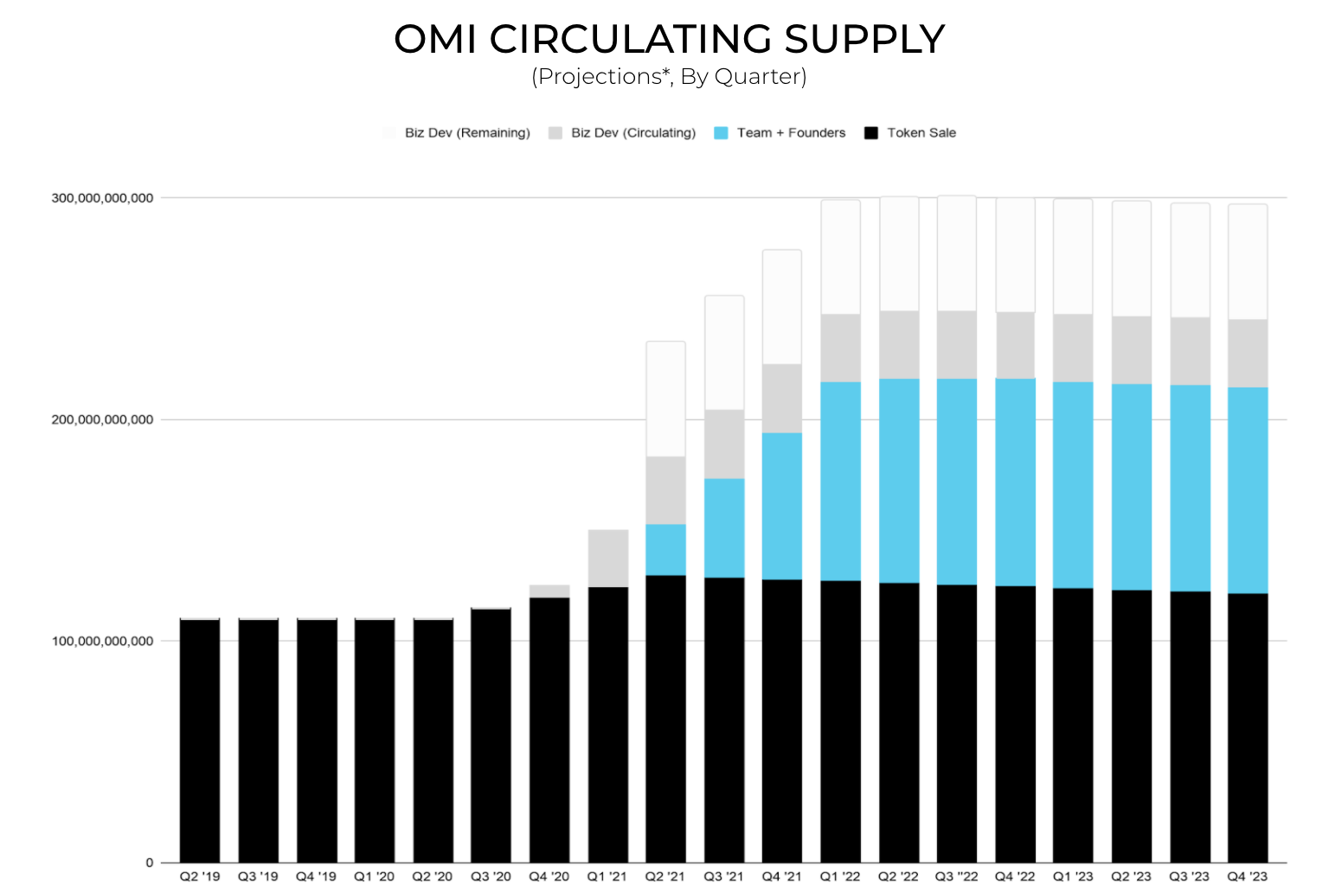 OMI coinin başlangıçtaki toplam arz miktarı 750 milyar olarak belirlendi. Bu toplam arzın %20’lik kısmı, projenin ilk finansmanı olarak değerlendirildi. Projenin Bitforex borsasında sunulan ilk finansman arzı, toplamda 1500 BTC değeri ile dolaşımda bulunuyordu. Ayrıca toplam değer, BTC’nin 6.000-7.000 dolar aralığında oldu.