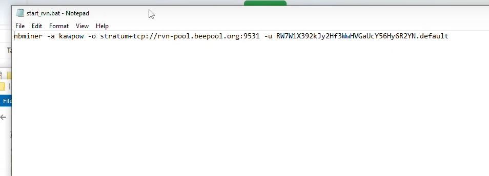 1. adımda almış olduğunuz Ravencoin cüzdan adresinizi start_rvn.bat’ın içine eklemeyi unutmamanız gerekir. Buradaki “Varsayılan” kısmını madencilik GPU’nuzun ismiyle değiştirmeniz işinizi kolaylaştıracaktır.