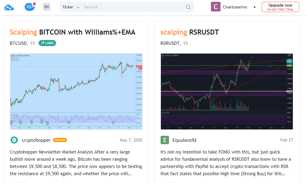 eToro’ya benzer şekilde TradingView, trader’lara bilgi ve yeni trading stratejileri sunan güncel bir bloğa sahiptir. Dikkate alınması gereken bir altcoin varsa, TradingView’da bulunabilir. Çünkü 100’den fazla kripto parayı desteklemektedir. En önemlisi, trading alıştırması yapabilmeniz için gerçek piyasa verileri sağlamasıdır.
