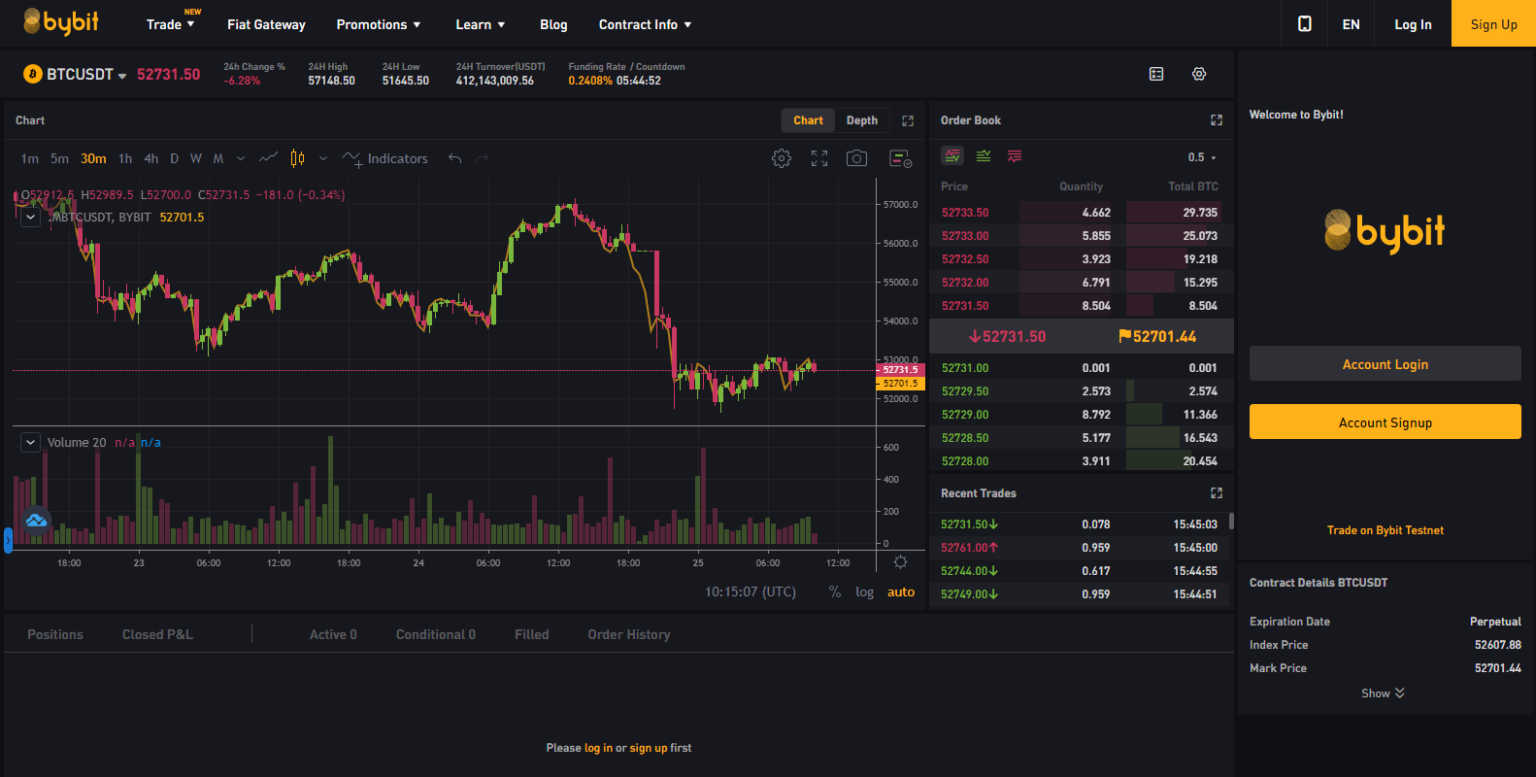 Bu trading platformu, kaldıraçlar konusunda uzmandır. Kripto paralarda 100x’e varan kaldıraçlara izin verir. Modern ve kullanıcı dostu bir arayüze sahiptir. Ayrıca, scalper’lara eğitim vermek amacıyla bir dizi güçlü indikatör ve grafik sunar. ByBit ile yüksek frekanslı trading’inizi geliştirmek için bir test ağı (testnet) kullanabilirsiniz.