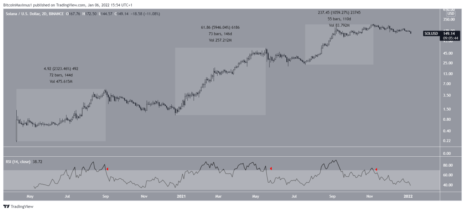 SOL için ilk yukarı yönlü hareket 2020’nin Nisan-Ağustos ayları arasında olmuştur. 144 günde %2.320 değer artışından sonra ikinci yukarı yönlü hareketini Aralık 2020–Mayıs 2021 arasında yapmıştır. Bu seferki yükseliş ile token değeri 146 günde %5.950 oranında artırılmıştır. Ayrıca bu artış SOL’un şimdiye kadarki en keskin tırmanışını oluşturmaktadır.
