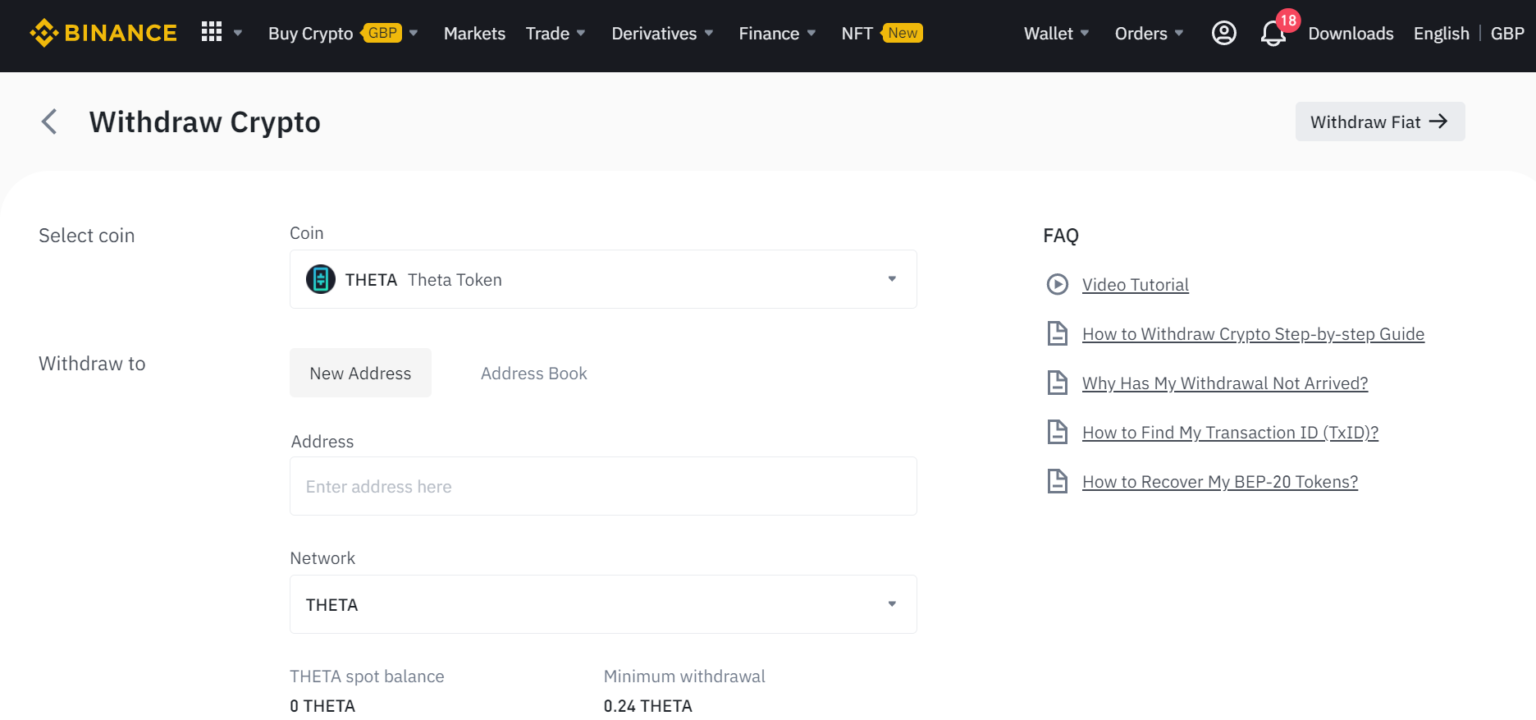 Bir sonraki adım Binance cüzdanınıza gitmek ve sayfanın üst kısmındaki ‘Withdraw’ seçeneğine tıklamak olacaktır. Bu sizi aşağıda gösterilen sayfaya yönlendirecektir.