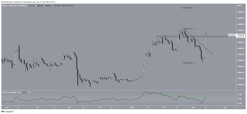 Eğer artış devam ederse, BTC için en yakın direnç, 1,61 harici Fib seviyesi olan 28.711 dolarda yatıyor.