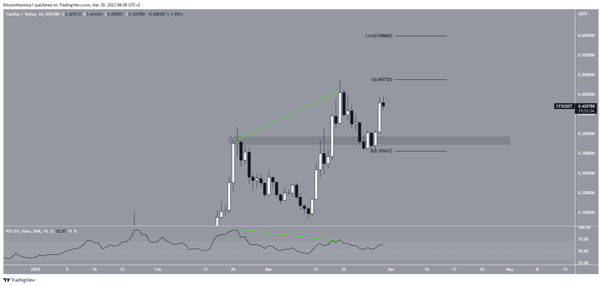 Conflux fiyatı, 19 Mart’ta 0,487 dolara ulaştıktan sonra düşüşe geçti. Düşüşten önce ise günlük RSI’da negatif uyumsuzluk ortaya çıktı.