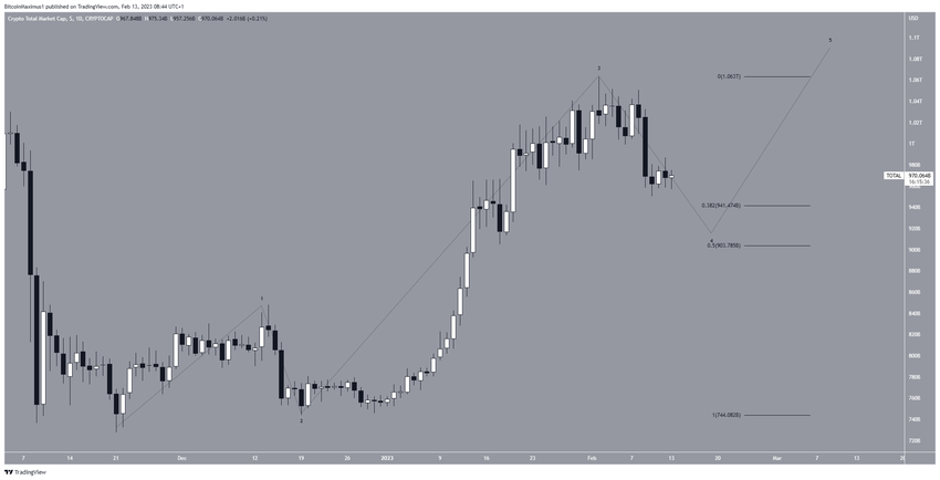 TOTALCAP, beş dalgalı yükseliş hareketinin dördüncü dalgasında yer alıyor. Henüz dördüncü dalganın düşük dip mi yapacağı, yoksa yatay formasyonda konsolidasyon mu olacağı belirsiz olsa da bu dalganın ardından 1,15 trilyon dolara doğru yükseliş beklentisi mevcut.