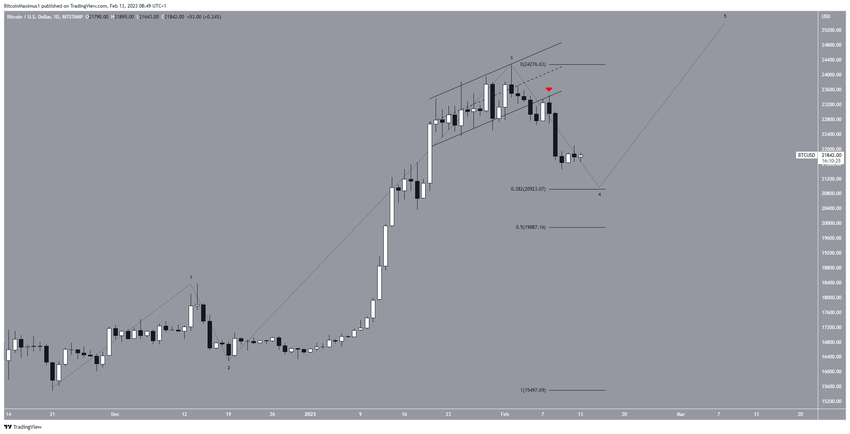 Kripto para piyasasına benzer şekilde Bitcoin fiyatı da beş dalgalı yükselişin dördüncü dalgasında yer alıyor olabilir. Bu hareket, yükselen paralel kanaldan bir kırılma ve ardından gelen direnç olarak test edilip onaylanmasıyla (kırmızı simge) daha da belirgin oldu.
